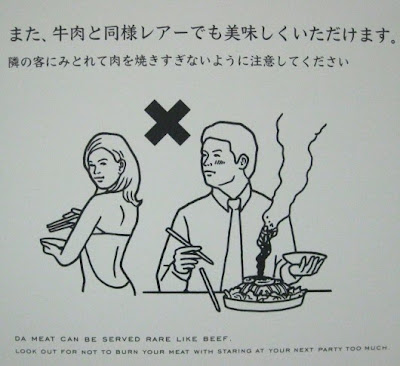 This is a poster for a Mongolian restaurant in Japan. It has Japanese and English instructions that teach people how to cook mutton on a Mongolian grill. Apparently the Japanese translation is fairly ordinary, but the English translation is... well you have to see it...