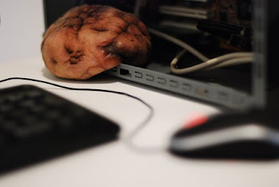Japanese artist Mio I-zawa has two great loves: robotics and nauseating people. His latest masterpiece is a flesh-like tumor that pulsates according to computer usage. When your computer is at rest it is a deflated cyst, but as you use more computing power it grows into a big Akira-like tumor.
