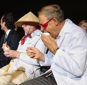 Thats right, Yamamoto produces vanillin out of cow dung. A one hour heating and pressuring process transforms excrement into the sweet smelling chemical, which can be used in shampoo, perfumes, or food products. Toscanini’s Ice Cream in Cambridge Massachusetts has even named a new flavor in honor of Mayu, Yum-A-Moto Vanilla Twist. To the right is a photo of Yamamoto's fellow Ig Nobel Laureates sampling the new flavor.