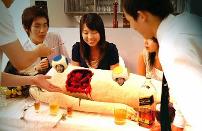 Apparently there's a restaurant in Japan that serves up full sized recreations of dead bodies. The entire body is edible; if you're in the mood for internal organs, you can cut them out and the body will actually bleed. I guess I can't really judge Japan on this one, it's sort of like the pinatas that we have at children's parties. This is just a super realistic, bleeding, meat pinata... perfectly normal.