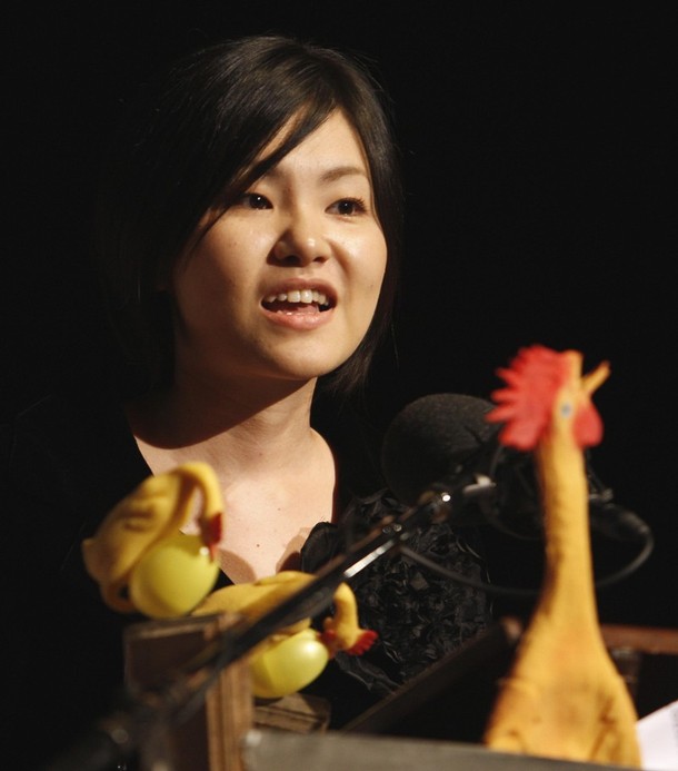 Above is a picture of Japanese Chemist Mayu Yamamoto, accepting her 2007 Ig Nobel Prize for Chemistry.