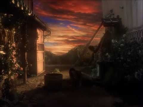 Another reason why you shouldn't procrastinate drawing water from the well till evening.... You can't see the colour of the water and you can't see floating heads in the well! I like the painted sunset background!