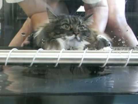 This is essentially abuse. Two minutes of some tool holding a cat in place, clearly against its will. And as if the treadmill wasn't bad enough, it just had to be underwater as well? This isn't something you laugh at on the internet. This is something you present in court.