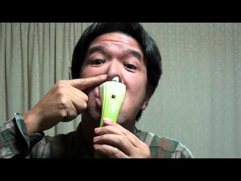 ReplyDeleteHe's not whistling. He's using his mouth to draw in air to blow into the celery. =/